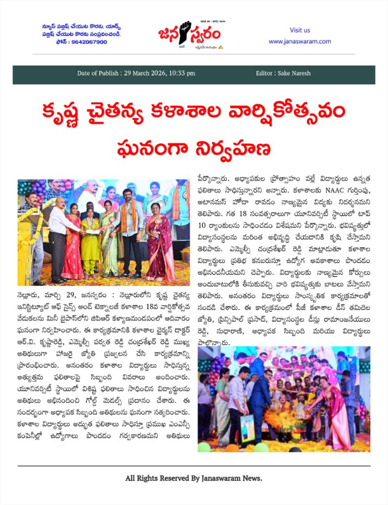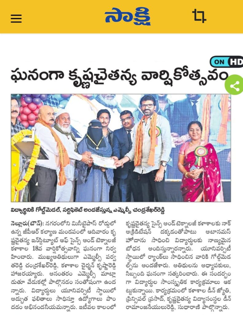 KRISHNA CHAITANYA INSTITUTE OF SCIENCE & TECHNOLOGY